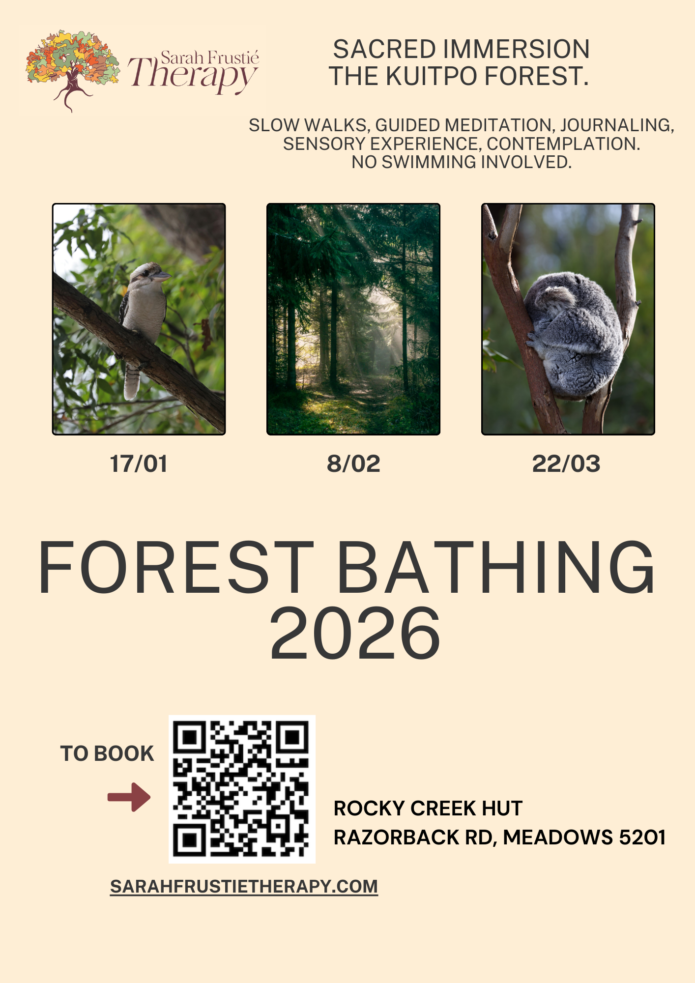 The Forest Bathing experiences are offered once a month in the peaceful Kuitpo Forest, Meadows, SA.